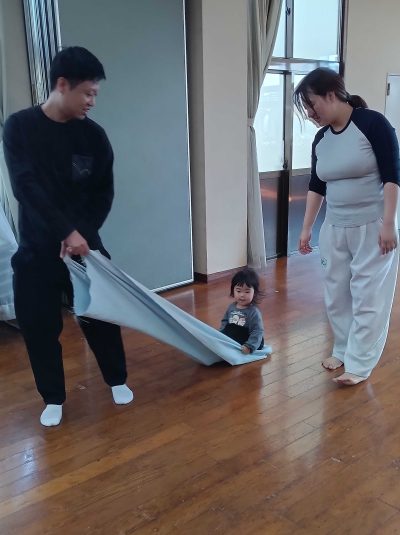 1歳9ヶ月のHちゃんと布そりで 楽しそう♪