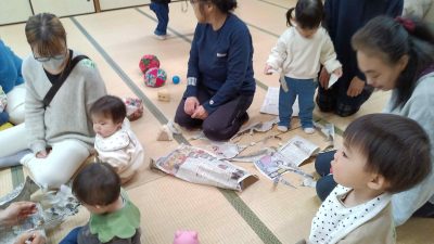 講師の今井寿美枝さんと遊んだ新聞紙あそび